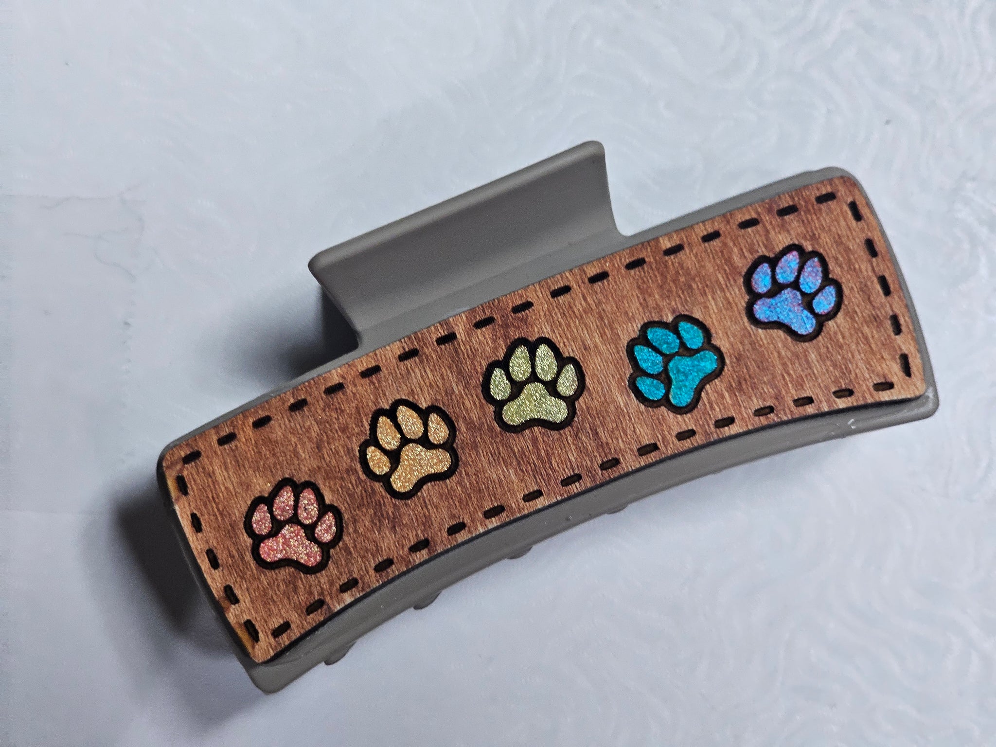 Painted wood attachment on 4.1 Inch non-slip square matte claws, strong hold banana clips for thick or thin hair.